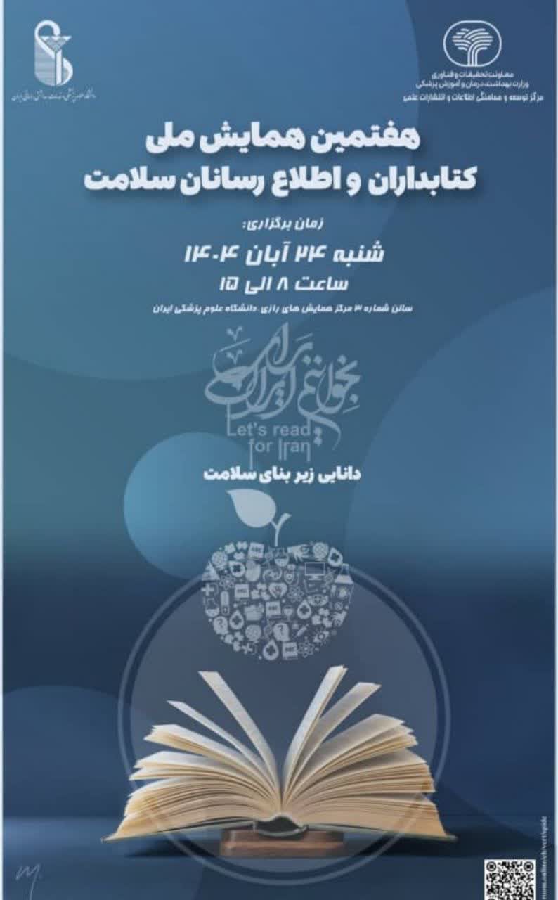 "هفتمین همایش ملی کتابداران و اطلاع رسانان سلامت" با هدف اشتراک تجربیات کتابخانه های حوزه سلامت و تقدیر از خدمات ارزنده کتابداران علوم پزشکی کشور در تاریخ شنبه 24 آبان 1404 از ساعت 8 صبح الی 15 عصر در سال همایش های بین المللی رازی دانشگاه علوم پزشکی ایران برگزار می گردد.